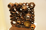 2018Beeld uit gerecycleerd metaal, met petanque bal in verwerkt