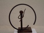 2017Sierlijk werk uit metaal met petanque bal in verwerkt